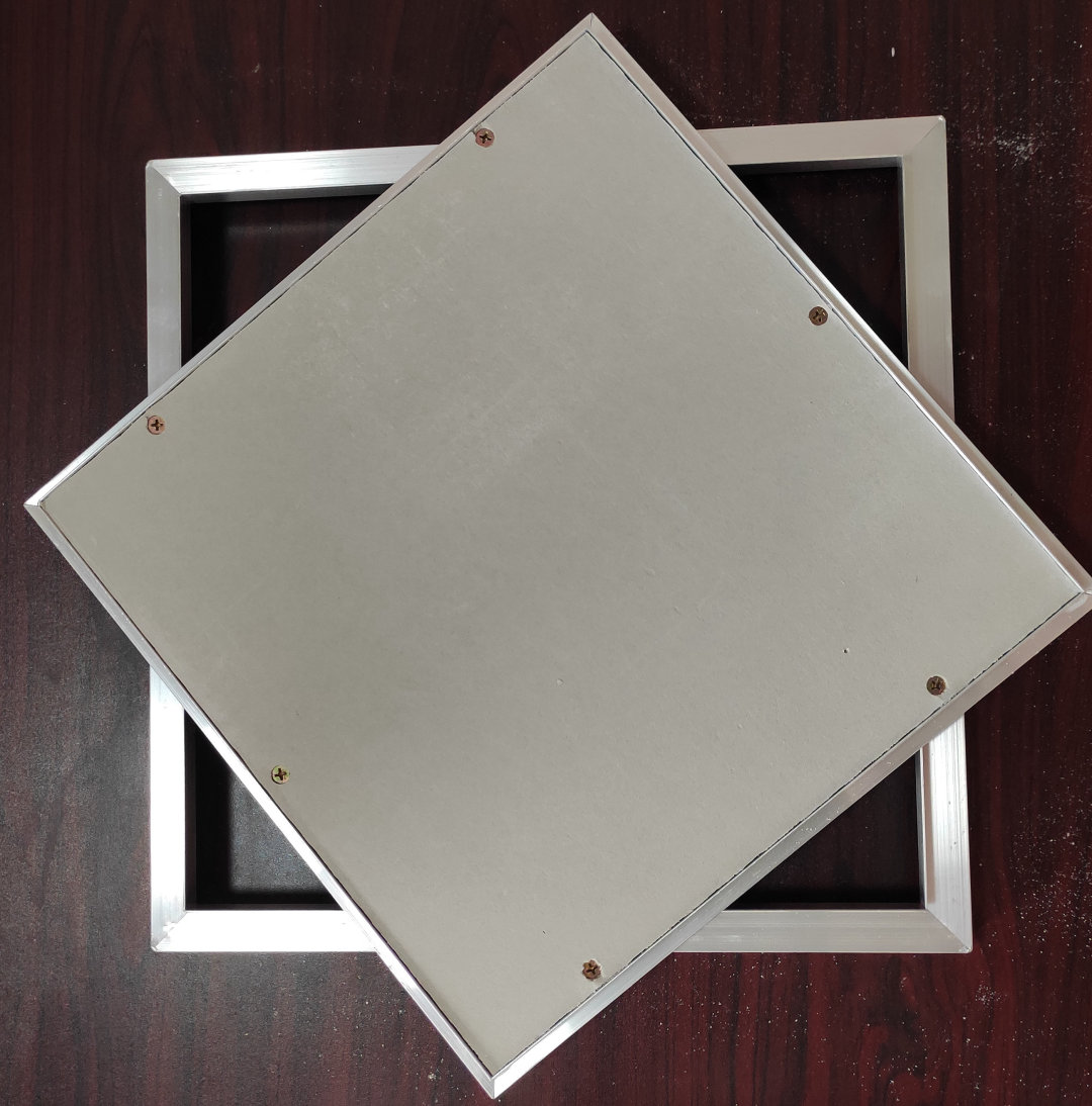 雙鋁邊框石膏檢修口也是暗藏式設(shè)計,外面是鋁合金邊框,中間是高強度石膏板。